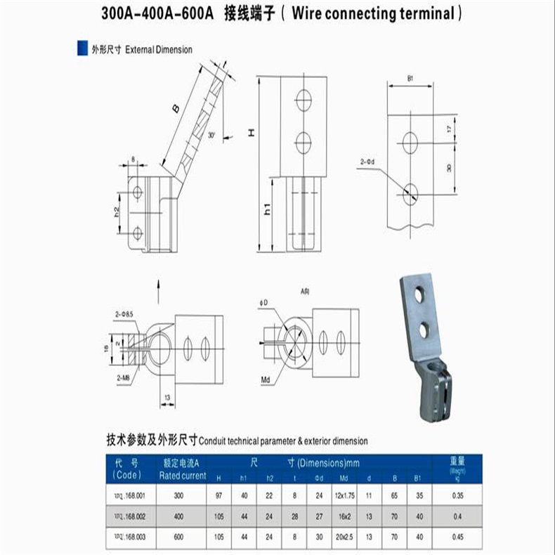本品采(cai)用螺絲(sī)套加側(ce)開縫設(she)計原理(li)安裝在(zài)設備導(dao)電杆上(shàng)後,按下(xia)線與安(ān)裝電氣(qì)設備端(duān)子所成(cheng)角🤩的不(bú)🌐同分為(wéi)0°、30°、90°三種。
